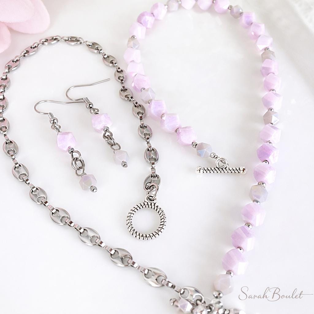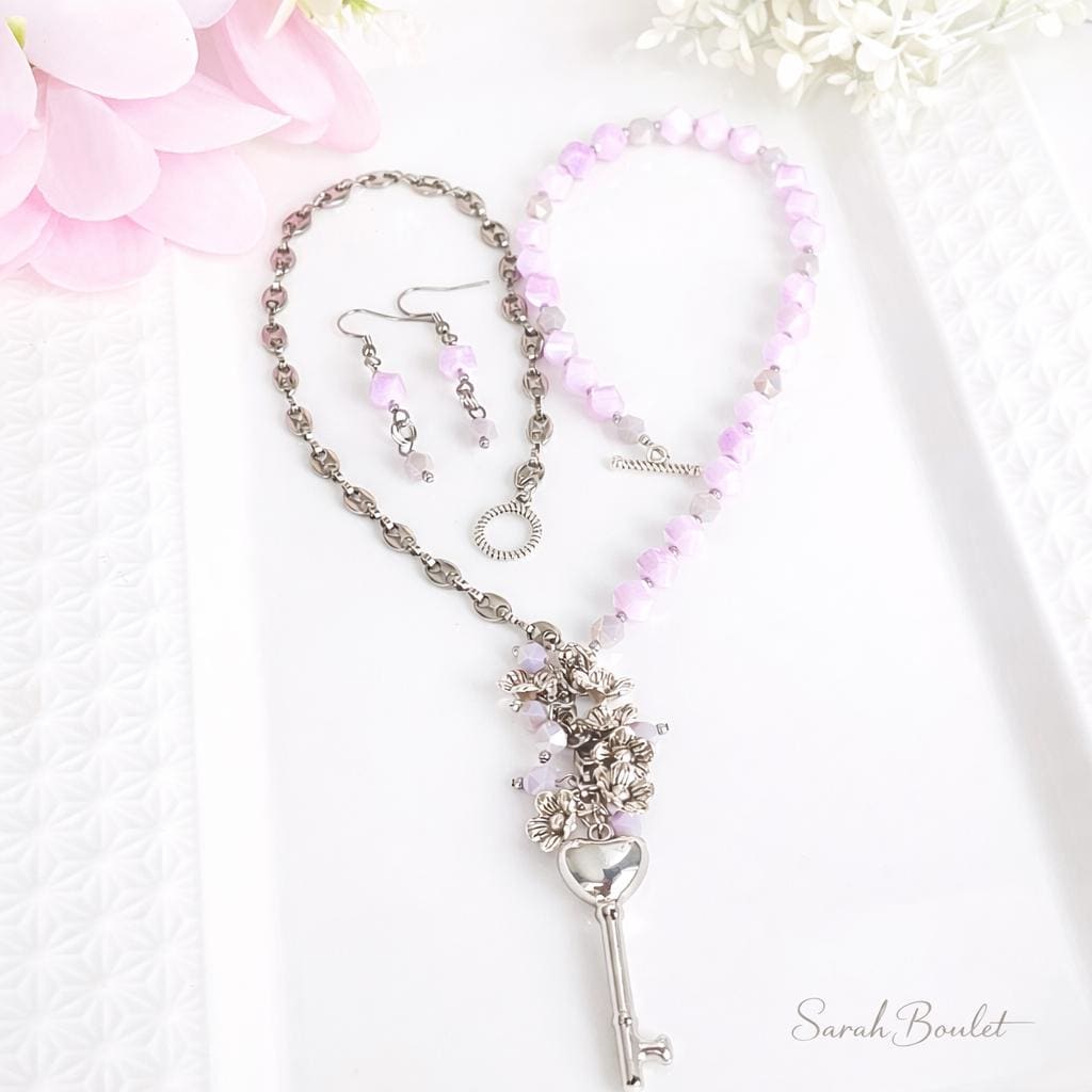 Collier clé lilas et rose