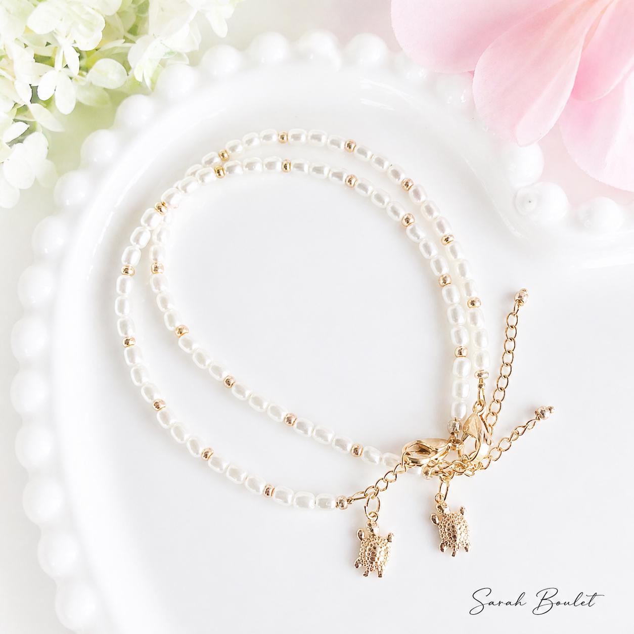 Bracelet cheville perle avec tortue