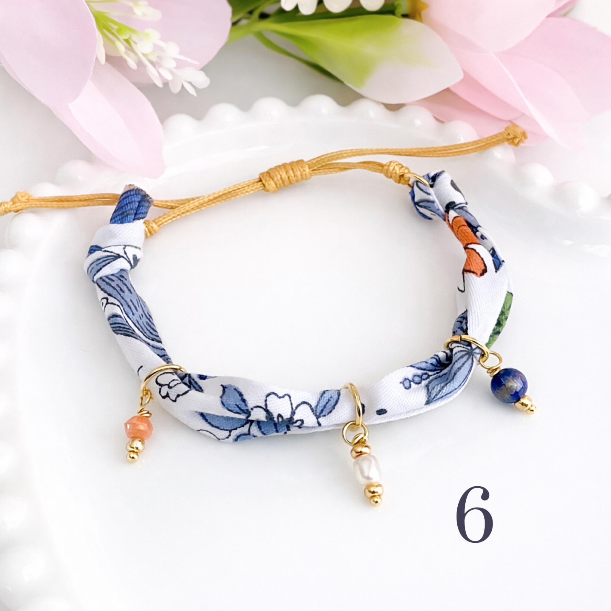 Bracelet bandana ajustable jaune fleuri – Bracelet bohème chic été – Bijou vacances plage – Cadeau femme