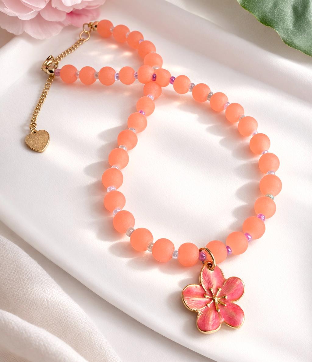 Collier en pierres jade papaye et perles arc-en-ciel avec breloque fleur