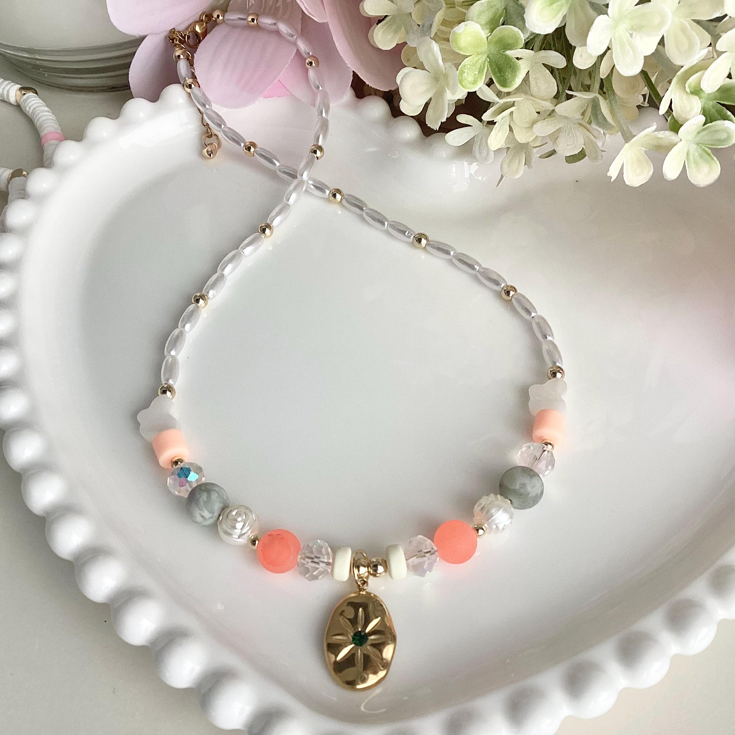 Un mélange harmonieusement ensemblé avec différentes perles aux textures et nuances délicates, offrant un rendu à la fois élégant, moderne et intemporel.