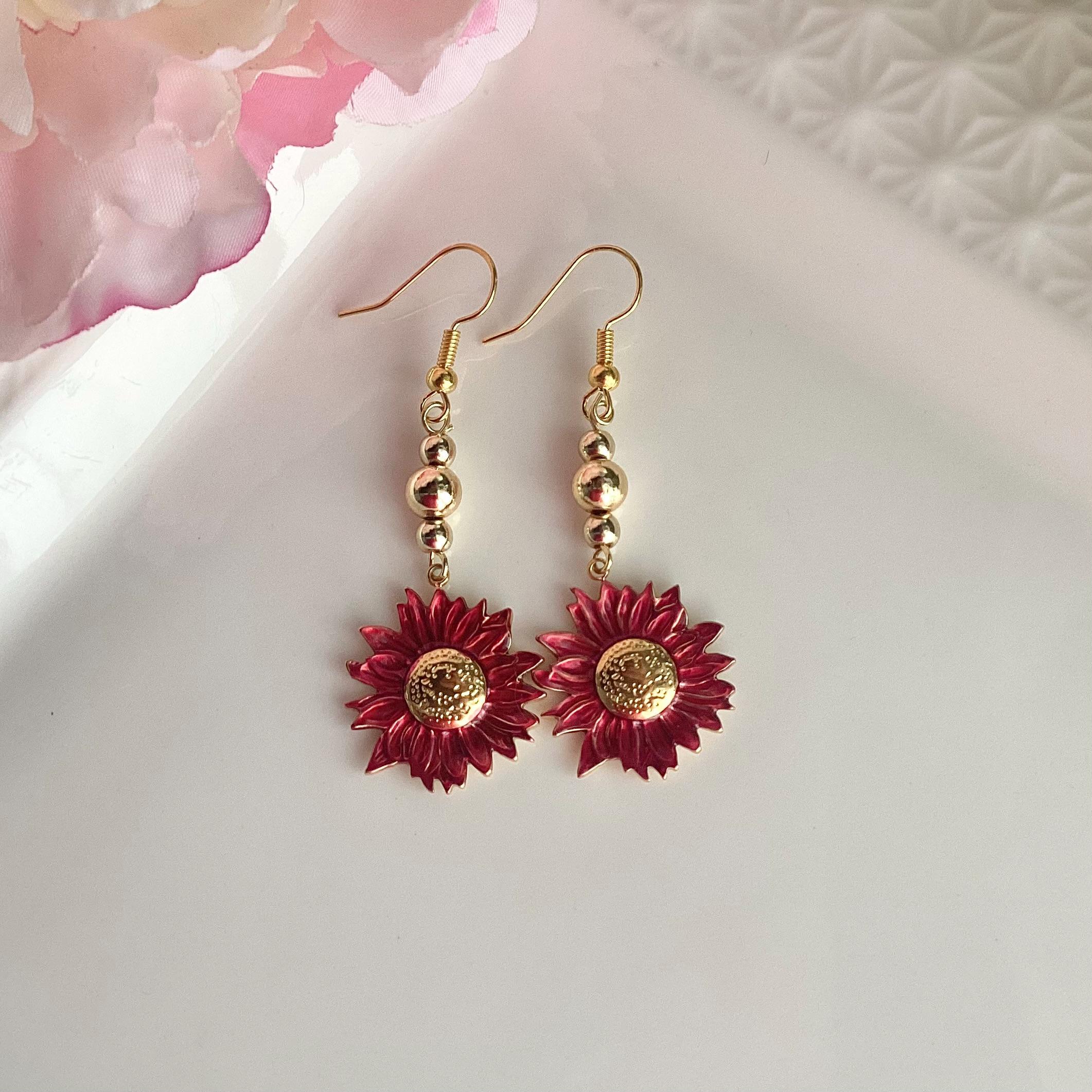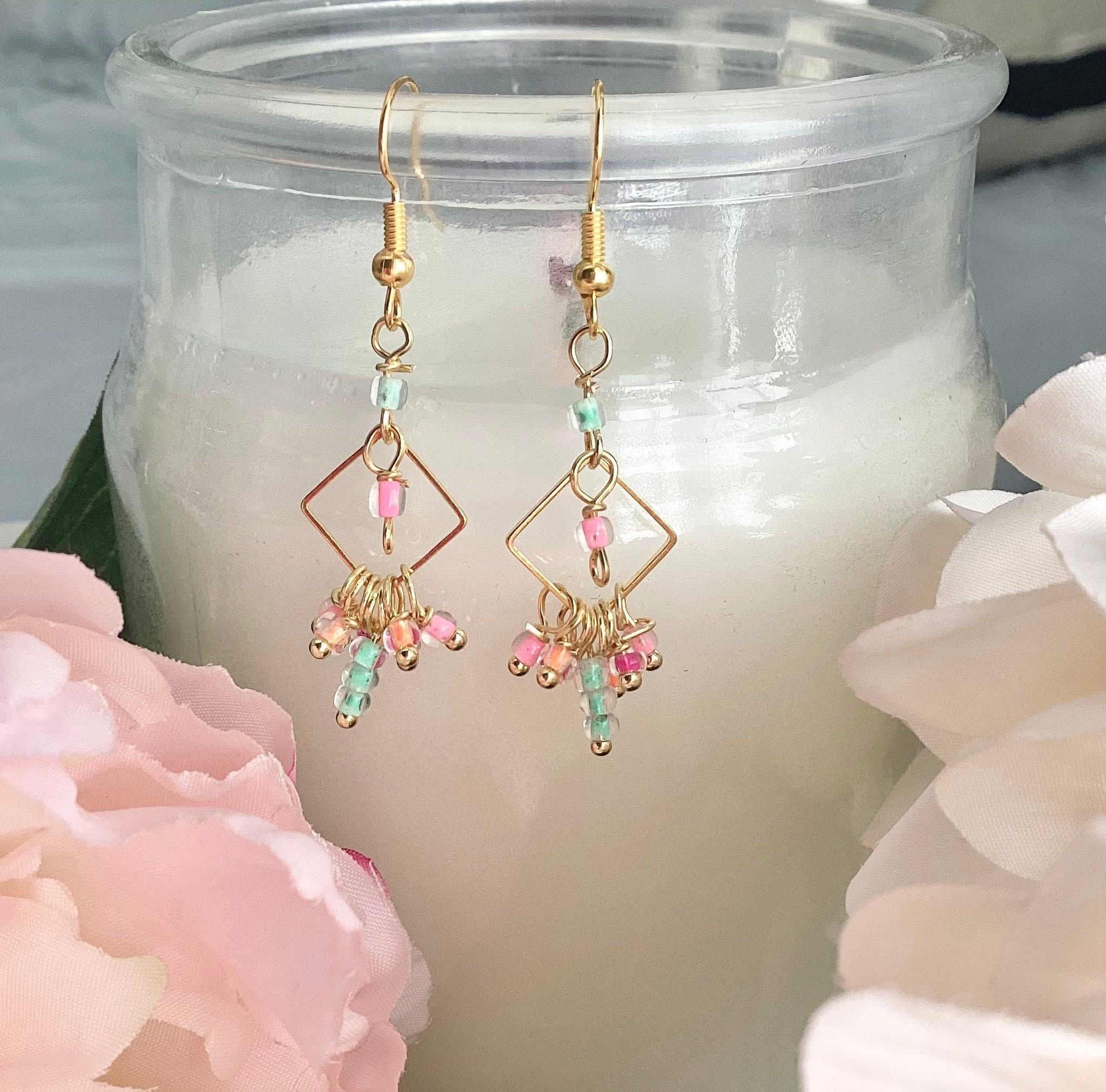 Boucles d’oreilles avec mini perles fleurs roses, blanches, rouges
