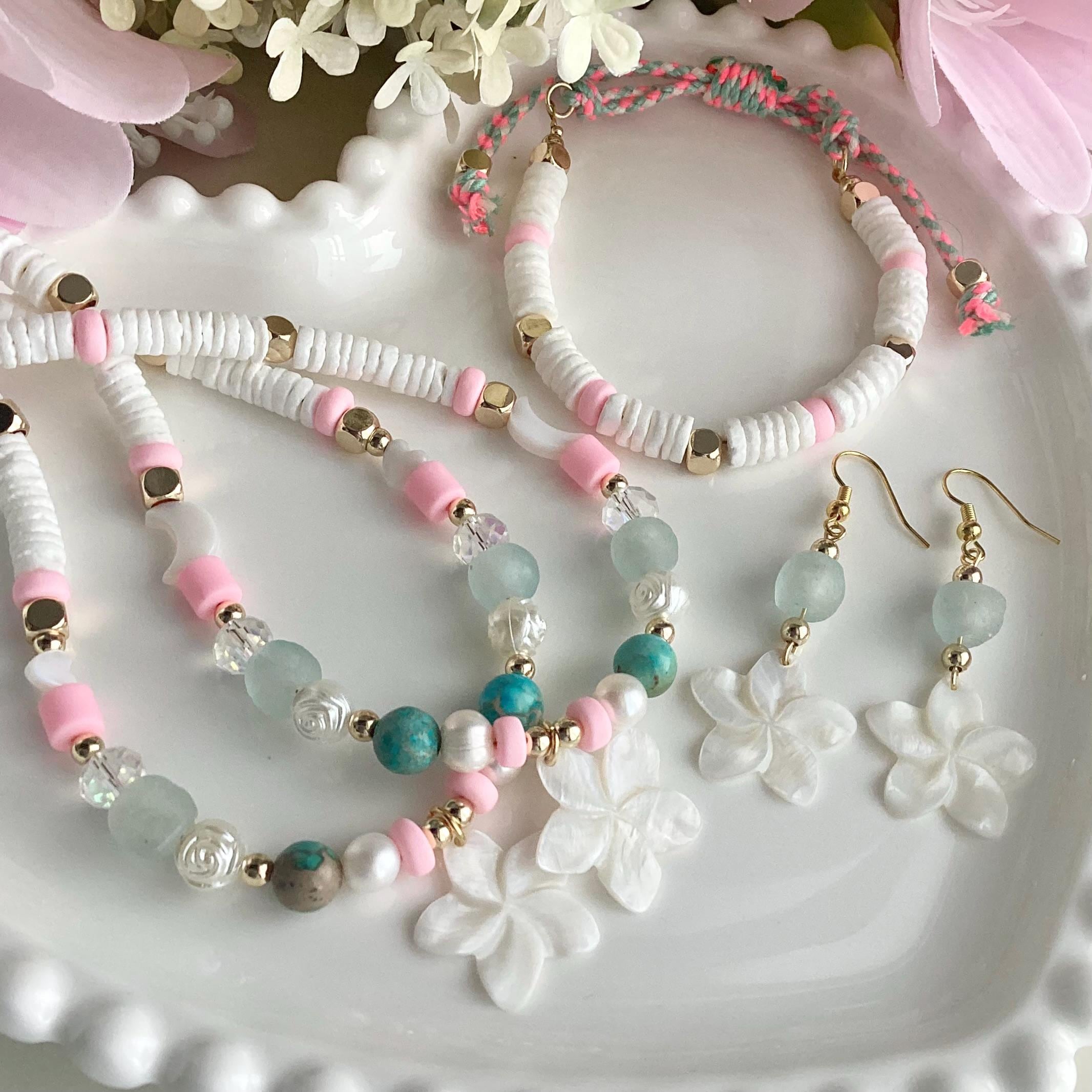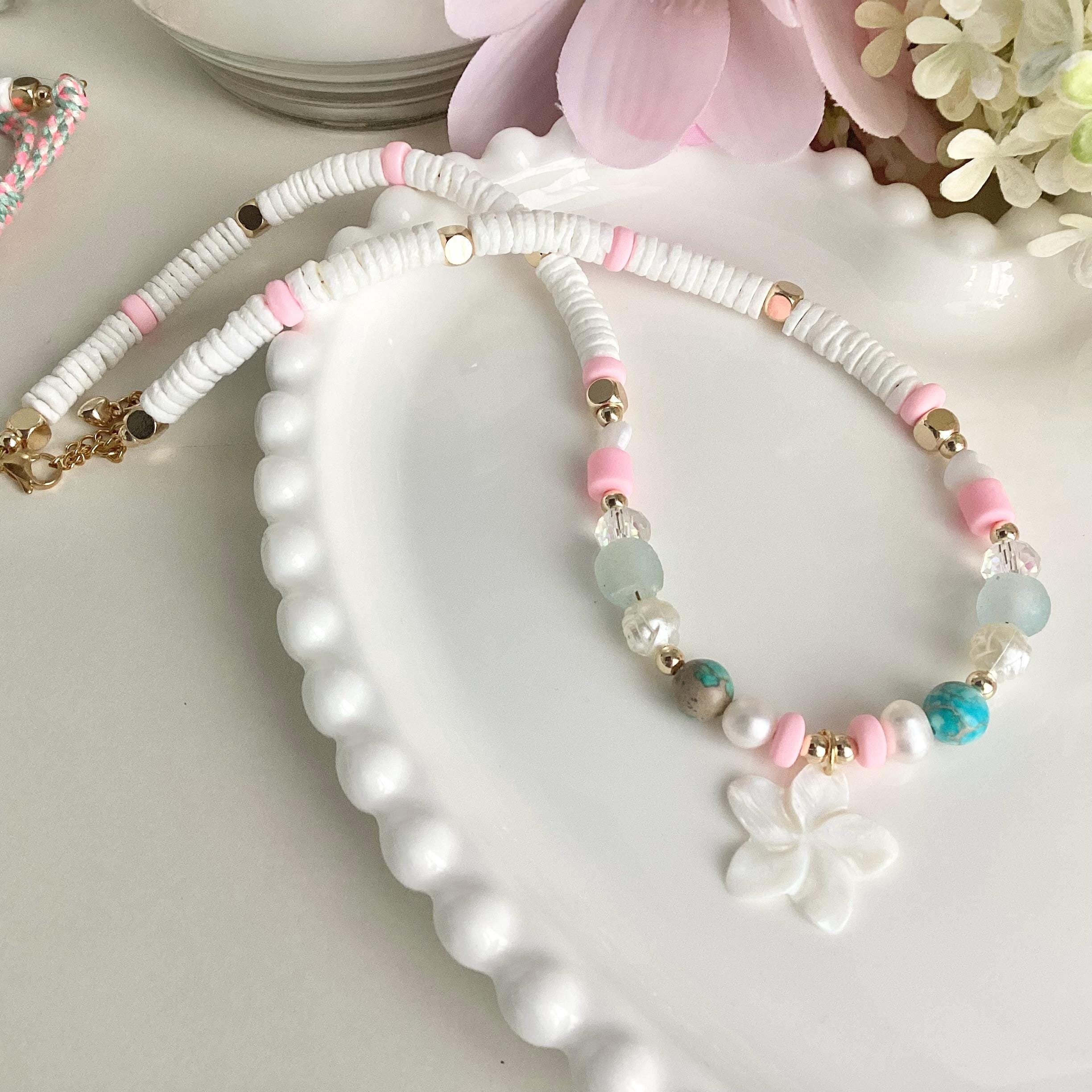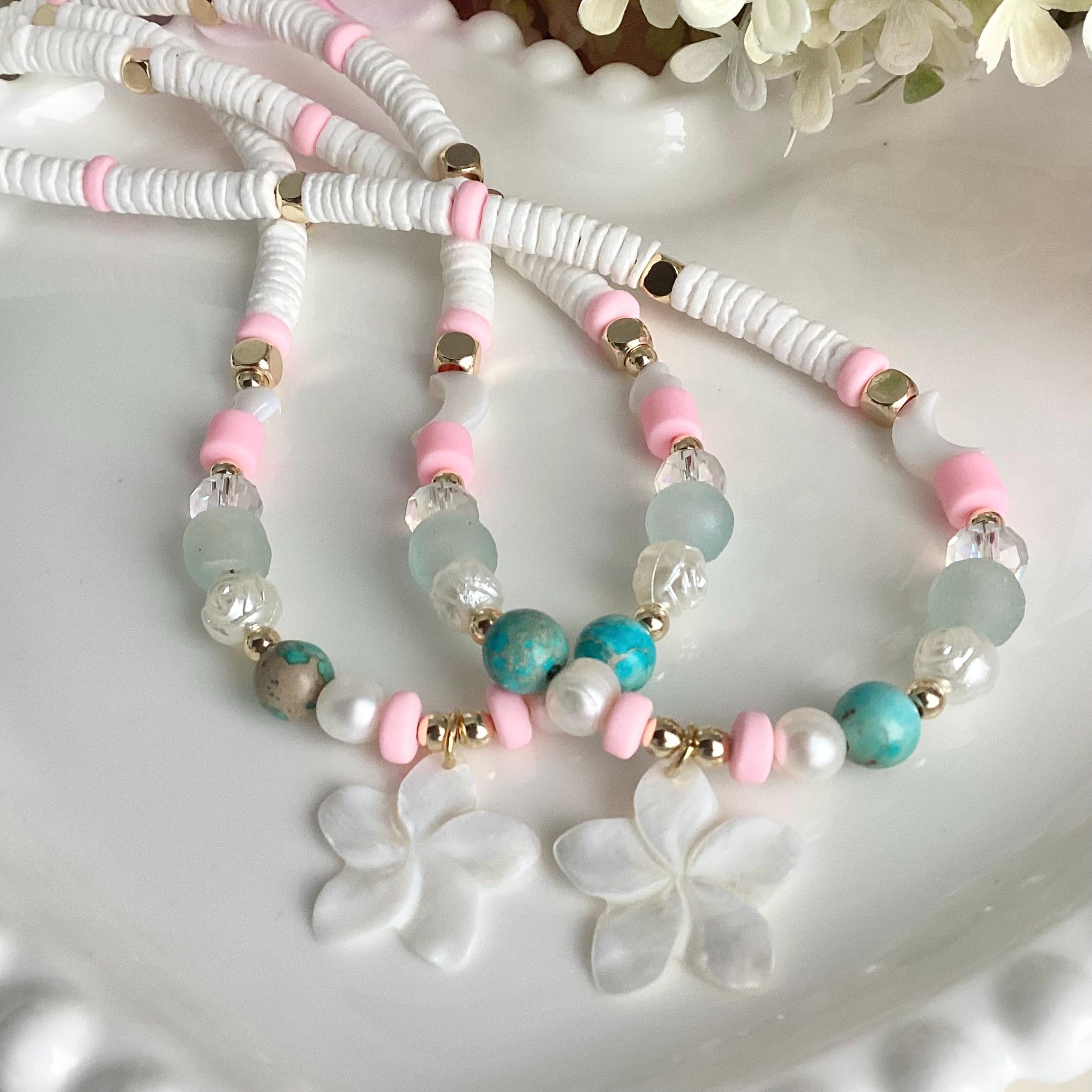 Collier Fleur de Lagon, une création inspirée de la douceur de l’été et de la mer.
