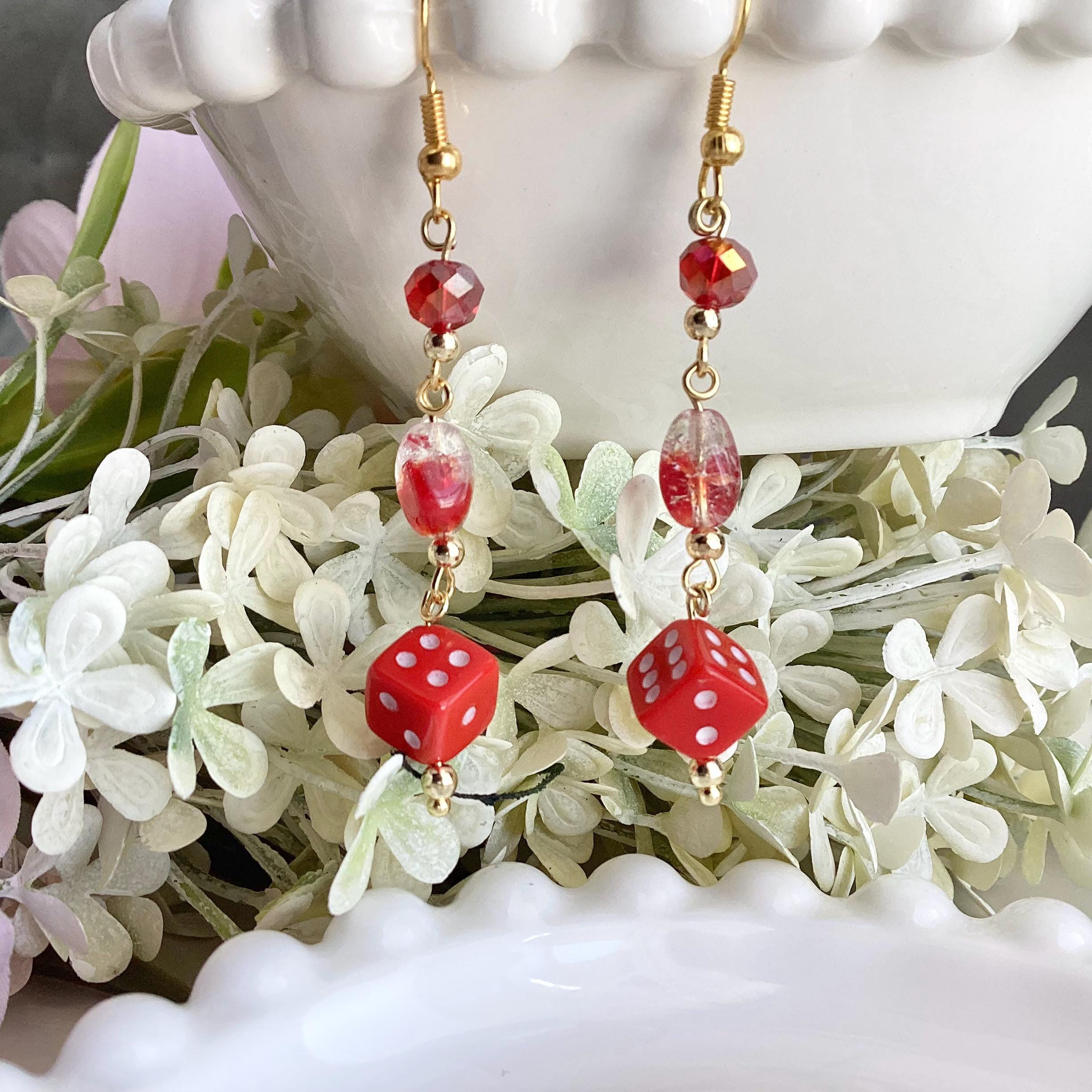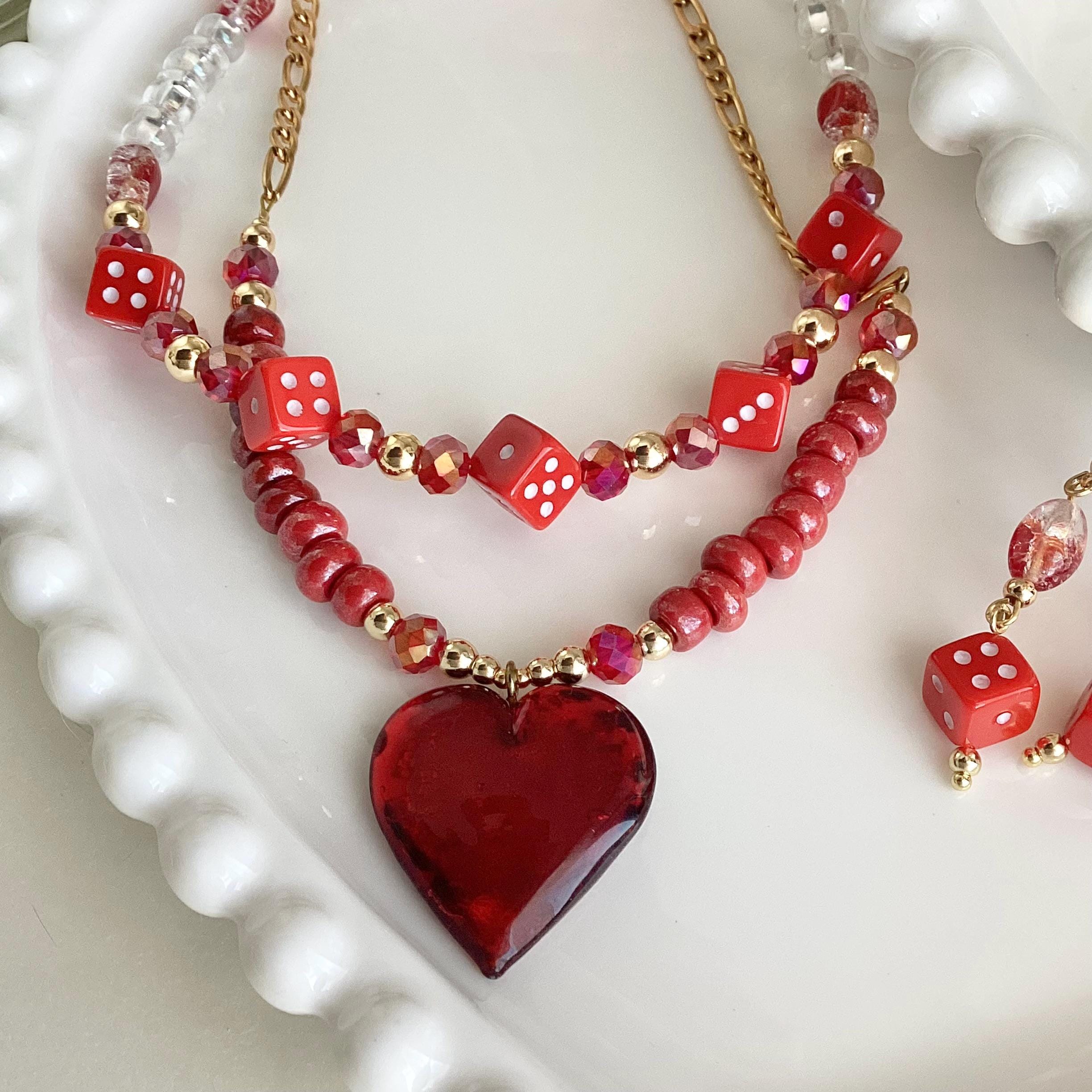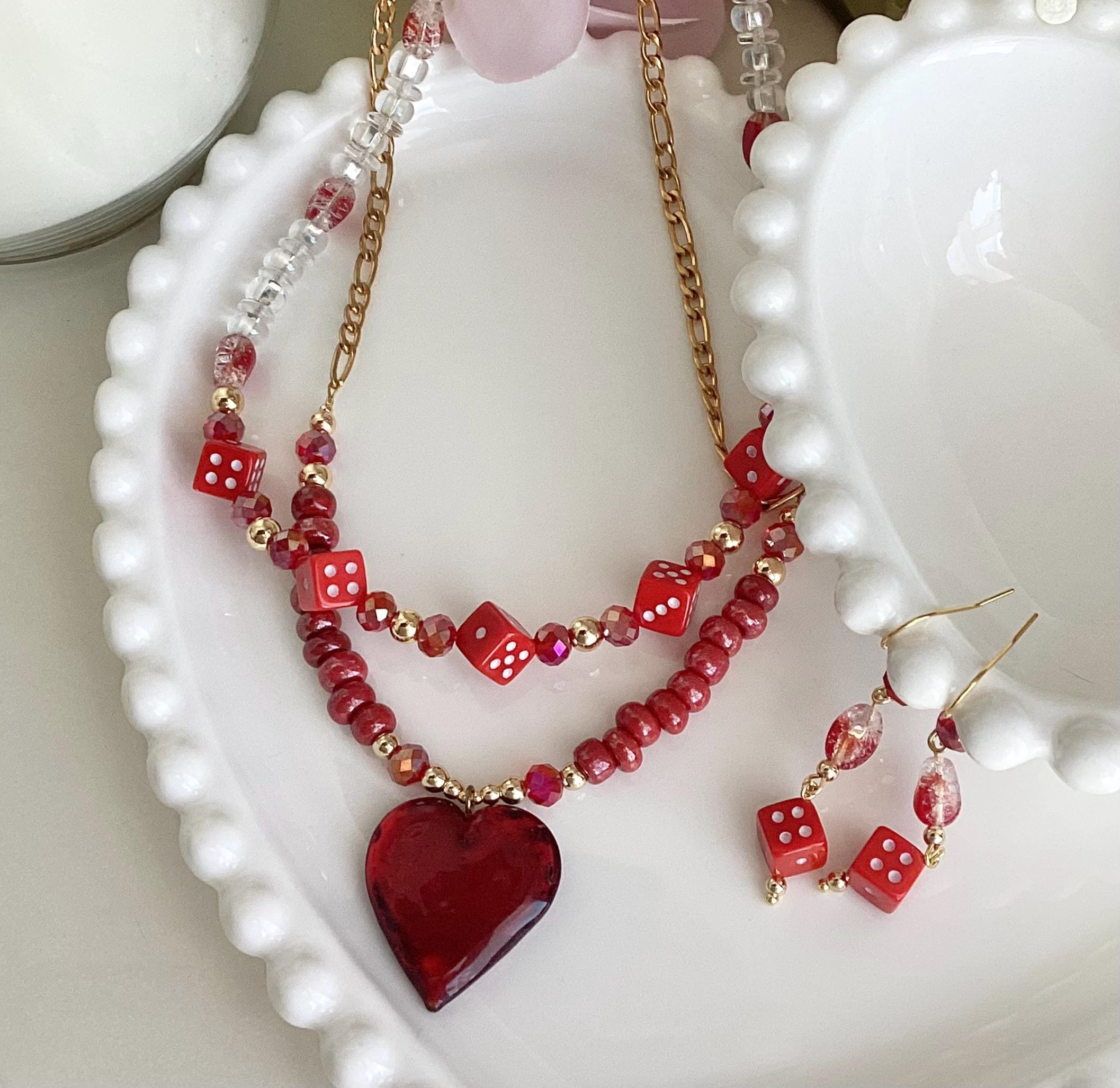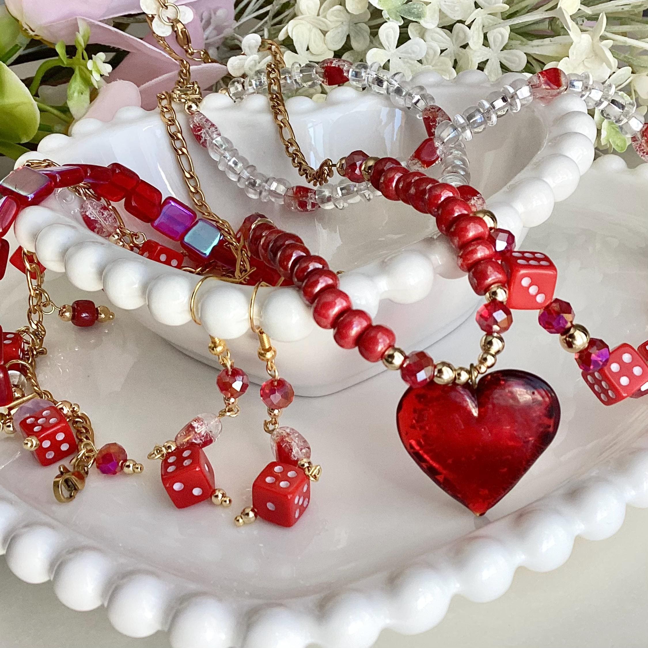 S’ajoute un ensemble de bijoux sur le thème des dés de jeu rouges :