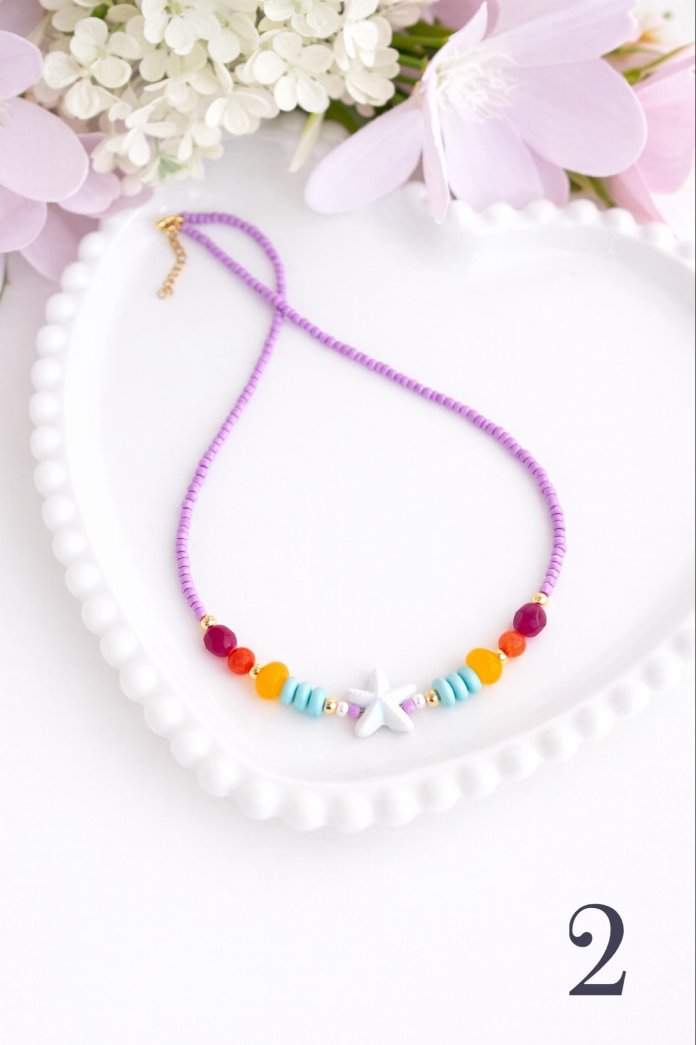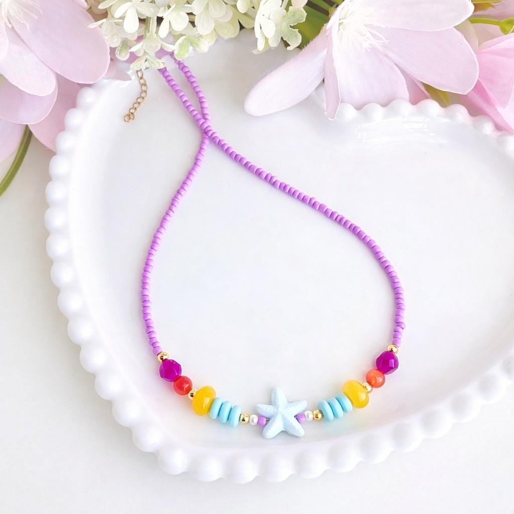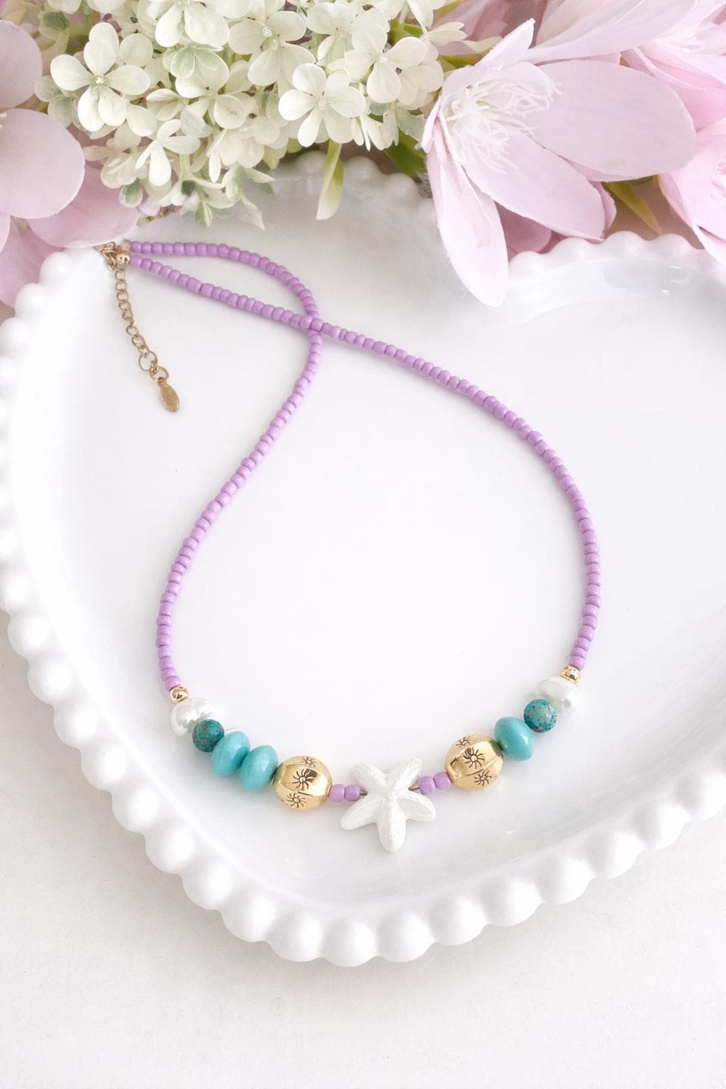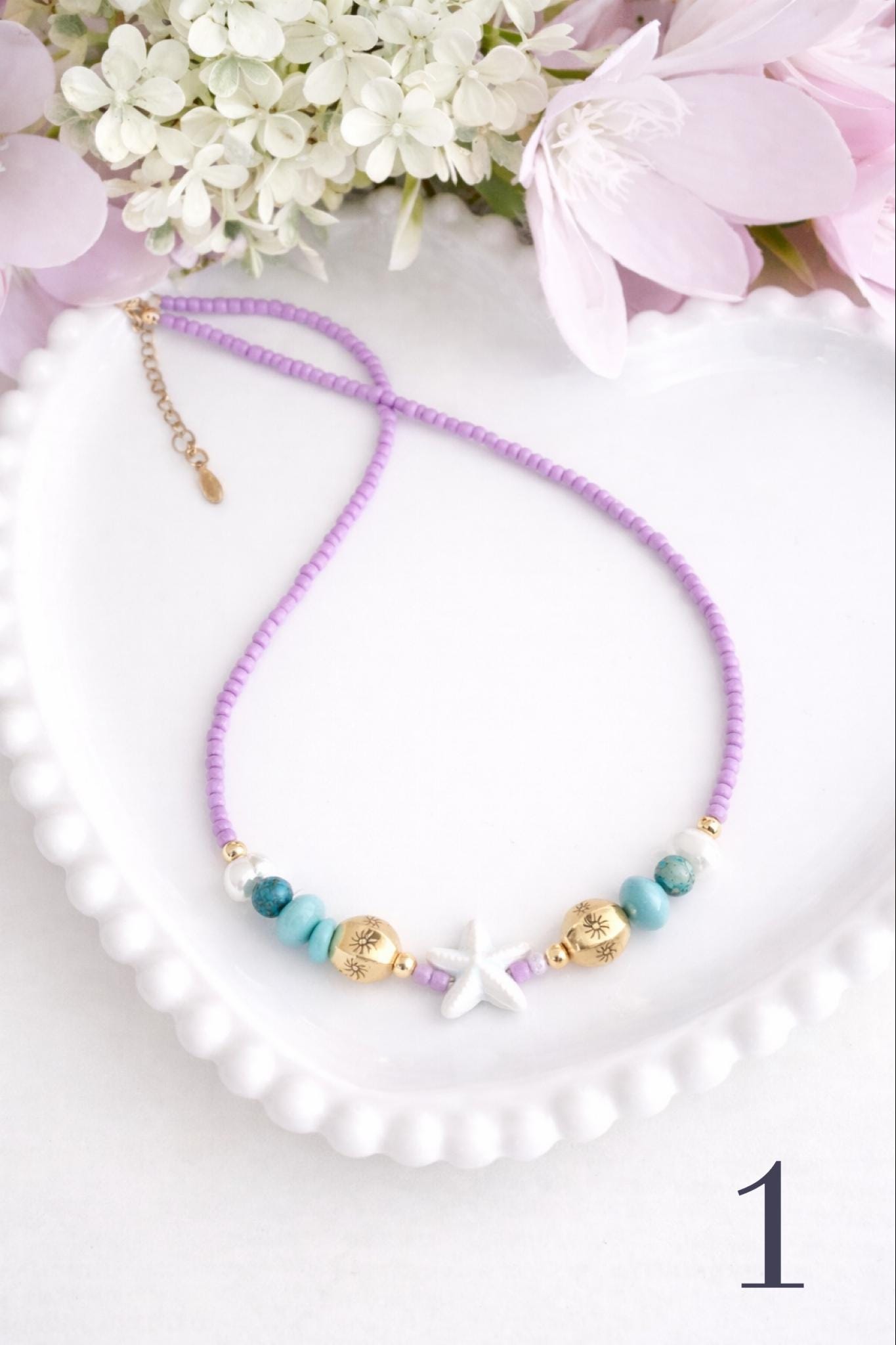 Collier étoile – Vibe bord de mer – Perles lilas et turquoise – Bijou été fait main