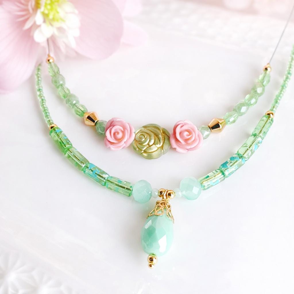 Ces bijoux délicats sont composés de perles pastel, fleurs sculptées et breloques dorées, créant un style à la fois romantique, frais et élégant. Les tons de rose, lilas, vert tendre et bleu doux rappellent les jardins printaniers et apportent une touche de lumière à chaque tenue.