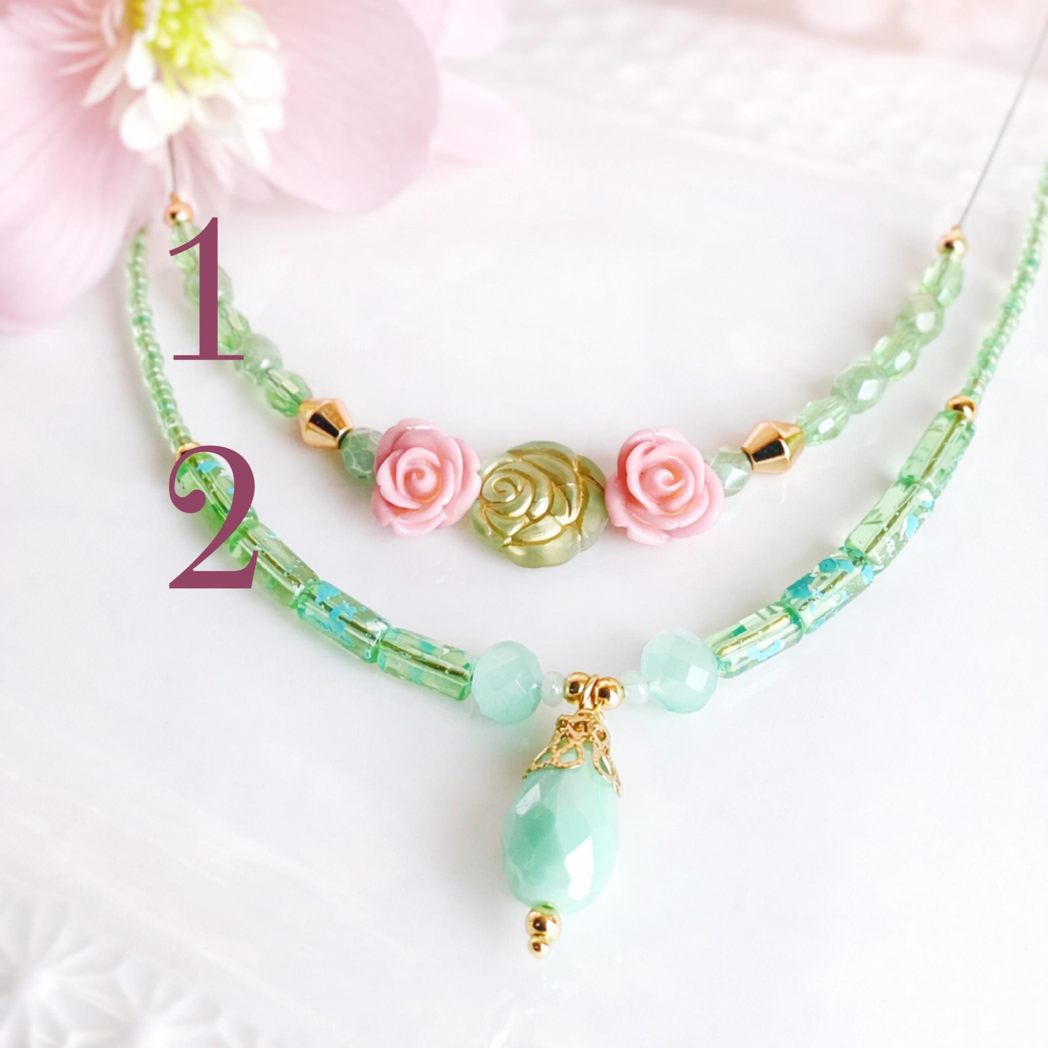 Collier floral pastel fait main – bijoux printanier perles pastel fleurs – bracelet romantique printemps – cadeau femme délicat